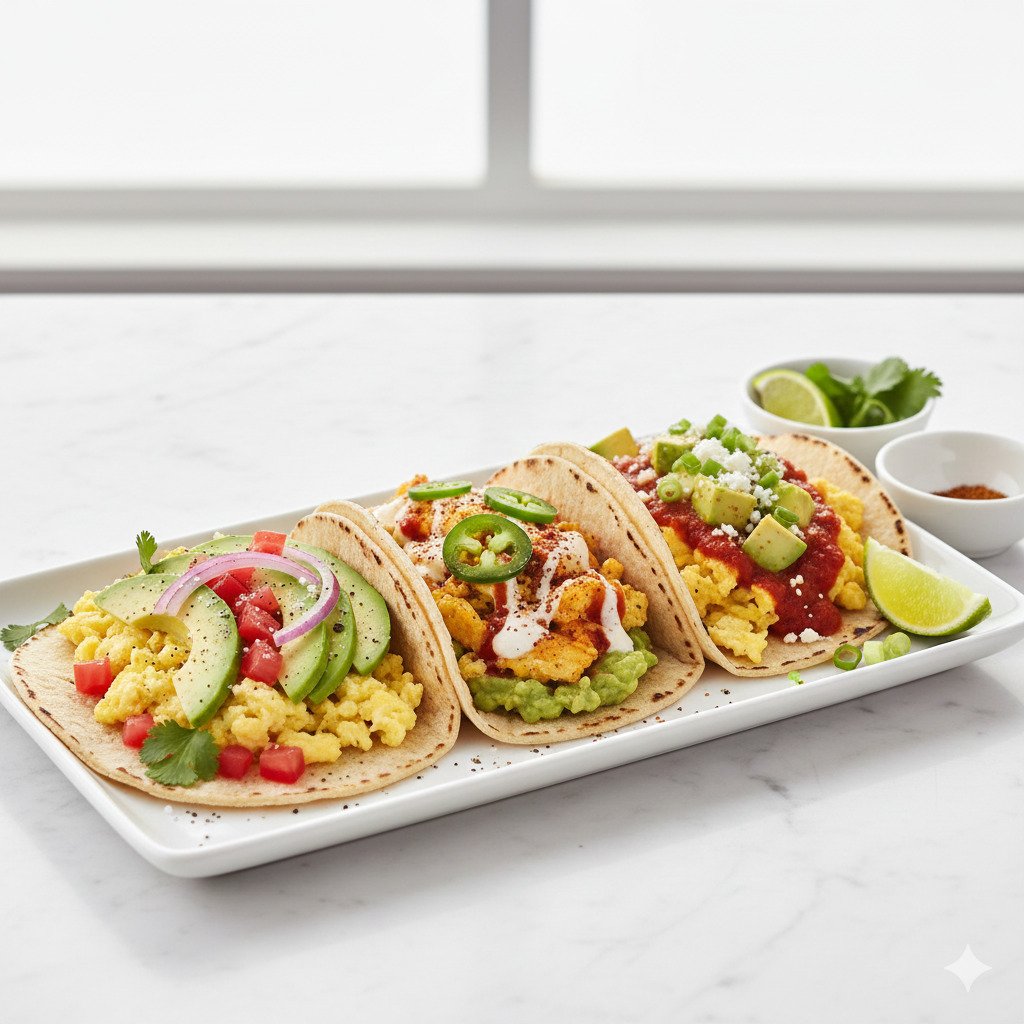 Freezer-Friendly Option: You can freeze assembled breakfast tacos (without avocado and fresh toppings) wrapped individually in foil, then stored in a freezer bag for up to 1 month. To reheat, remove foil, wrap in a paper towel, and microwave for 1-2 minutes, or heat in a 350°F oven for 15-20 minutes.