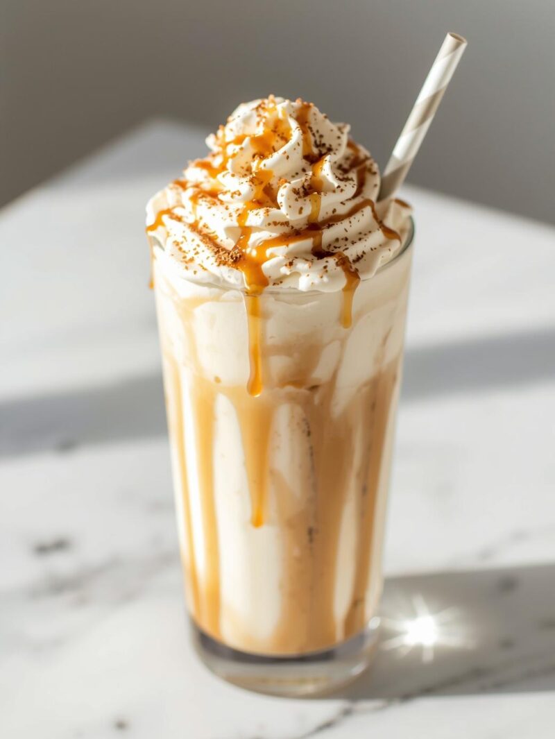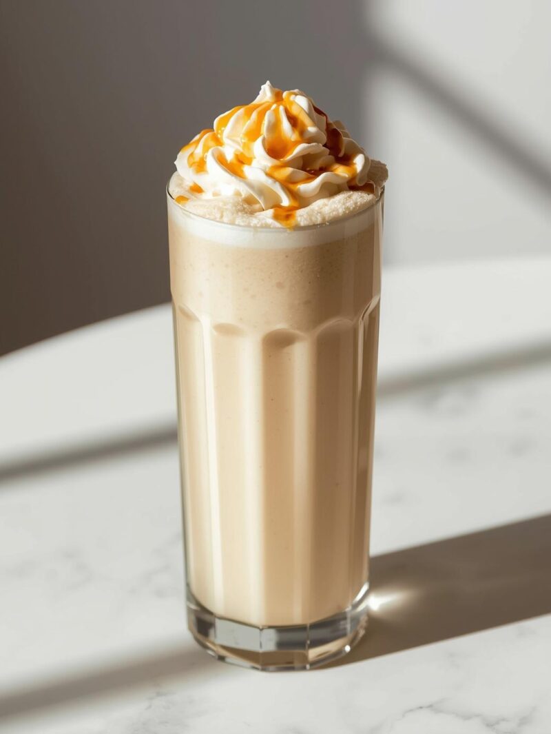 - Prepare the Glass: Drizzle some caramel sauce inside a tall glass. Pour the milkshake mixture into the glass.